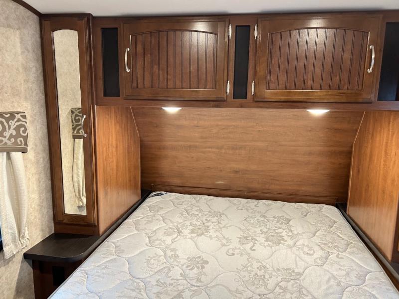 The front bedroom has a comfortable queen bed, two wardrobes, and an overhead cabinet. You are sure to enjoy the second entry/exit door into the bedroom from the outside.
