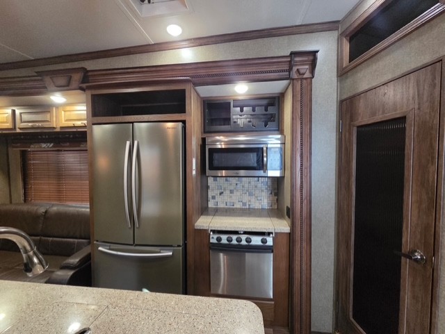 This rear living Alpine fifth wheel model 3101RL is very similar to the 3100RL featuring triple slides, a king size bed, and a convenient kitchen island. The main difference is that this Alpine features an 18 cu. ft. refrigerator instead of the 12 cu. ft. refrigerator found in the sister model.