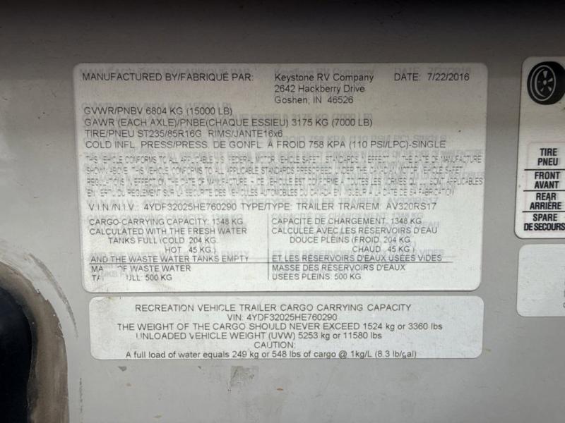 Wholesale to the Public! - AS IS!The perfect fifth wheel for entertaining and relaxing is this Keystone Avalanche 320RS. This model features dual opposing slides in the kitchen/living combined space for plenty of room to enjoy your family and friends, and a third slide in the master suite.