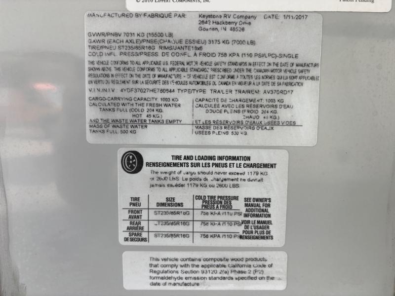 Used 2017 Keystone RV Avalanche 370RD Fifth Wheel