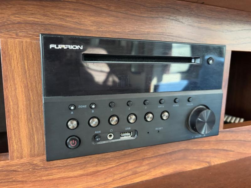 - Theater seating with cup holders directly across from the entertainment center