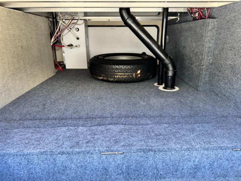 In the bedroom there is a queen bed, nightstand, wardrobe, overhead storage, and a slide with a wardrobe and linen cabinet. You can also access the linen cabinet from the bathroom.