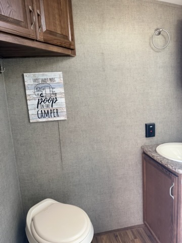 You will also enjoy the front pass-through storage compartment beneath the queen bed area for all of your outdoor camping gear, and so much more!