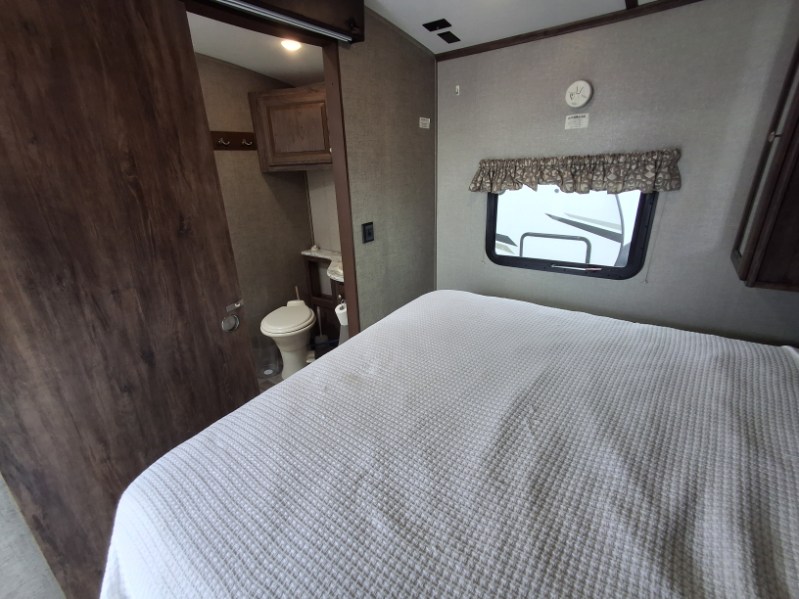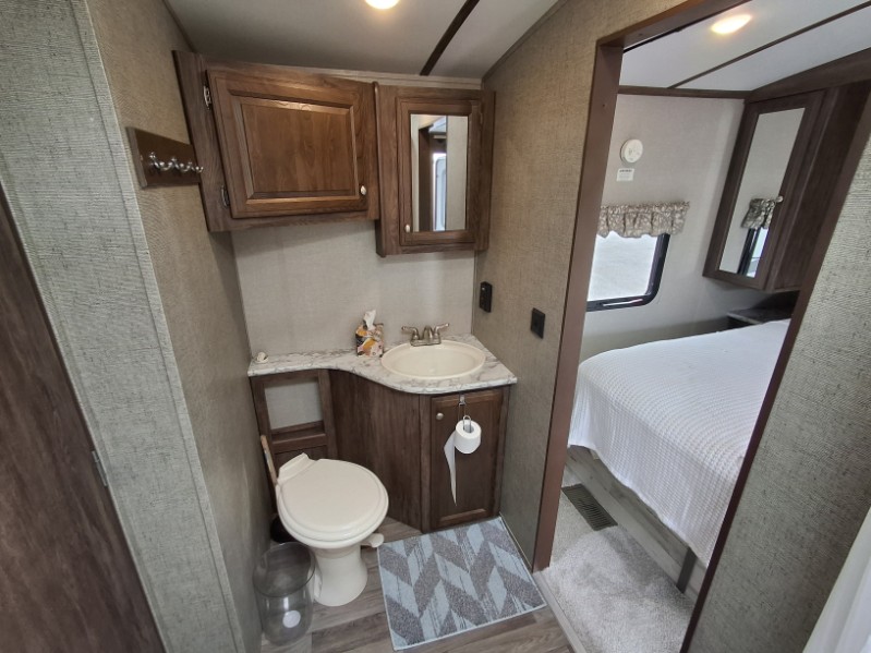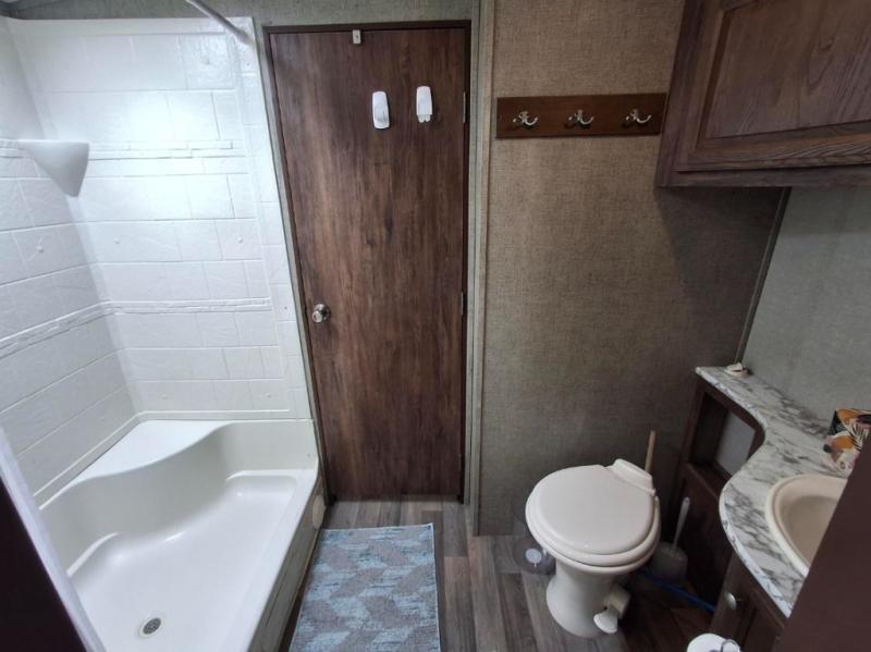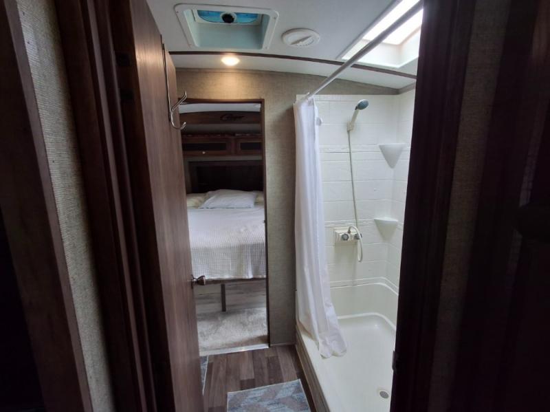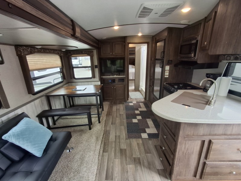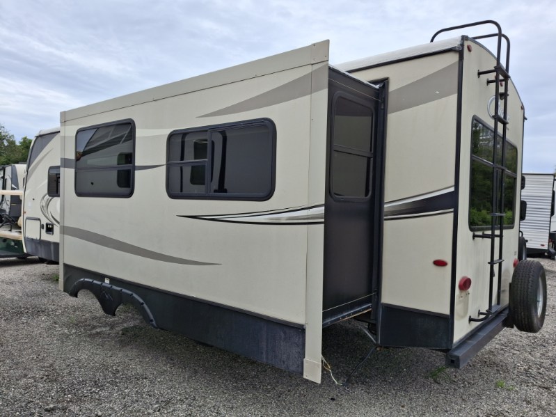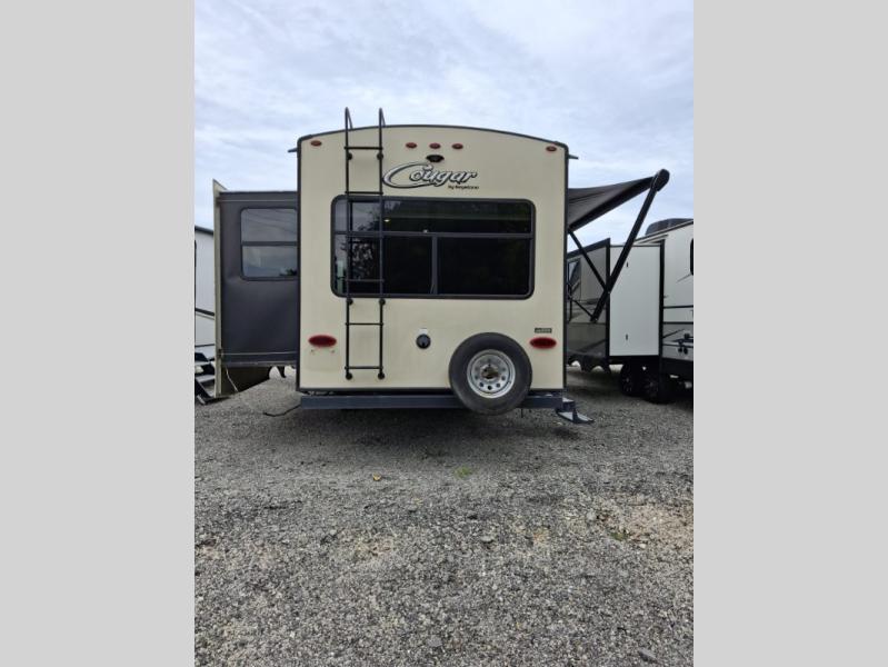 This rear living Cougar Half-ton Series travel trailer by Keystone RV has got you covered when it comes to camping. Model 28RLSWE offers sleeping for six, a large slide out for added interior space, plus dual entry doors for added convenience.