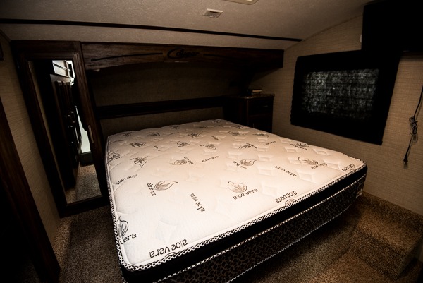 The bedroom offers a comfortable queen size bed with a bedside wardrobe and nightstand. You will also find a slide out wardrobe for additional storage, and a hamper/TV location next to the slide, plus so much more!