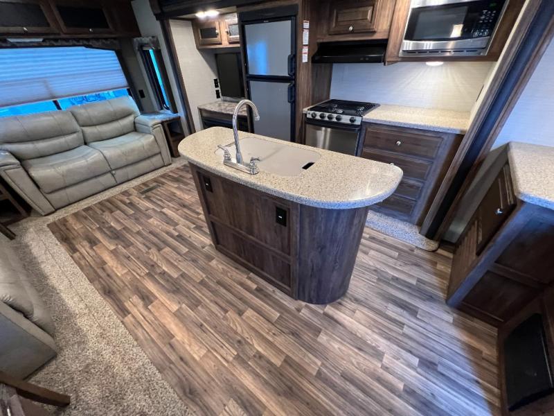 This triple slide Keystone Cougar X-Lite 30RLI travel trailer makes camping fun for everyone. Enjoy the added space created with dual opposing slide in the main living area. There is also a kitchen island, private front master bedroom, and exterior storage.
