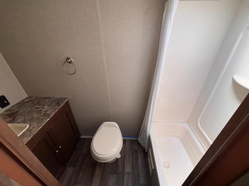 In the rear enjoy a full bath with shower, toilet, and vanity with sink, plus so much more!