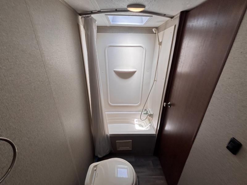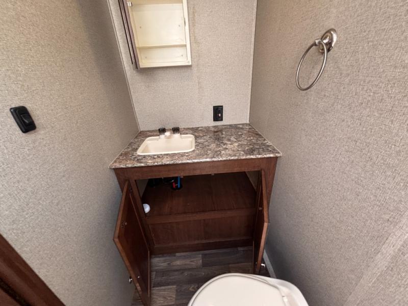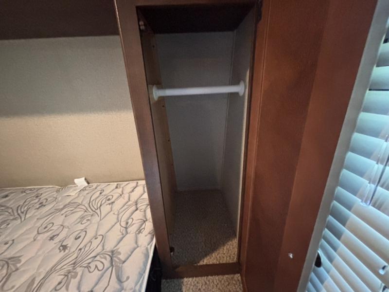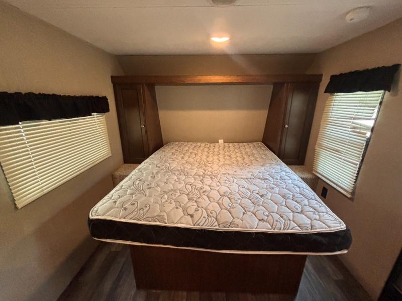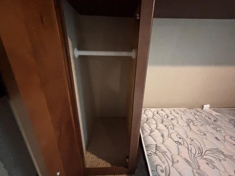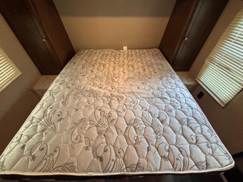 Enjoy the space you find inside this unit with a queen bed including dual closets, plus overhead storage as well. Beneath the front bed there is a spacious pass-through storage compartment for all of your outdoor camping gear to be neatly stowed away.