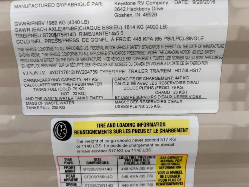 Used 2017 Keystone RV Hideout Single Axle 178LHS Travel Trailer