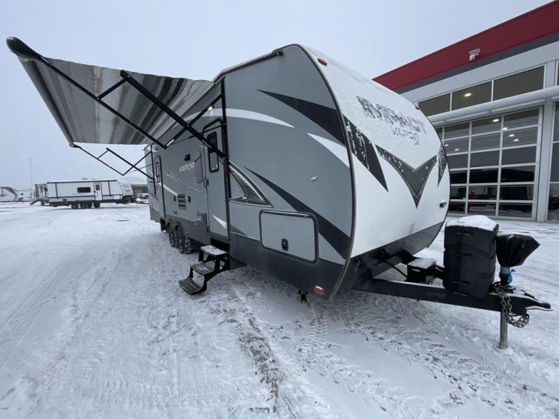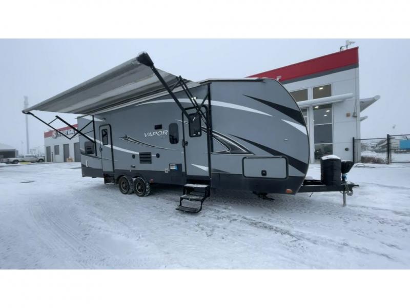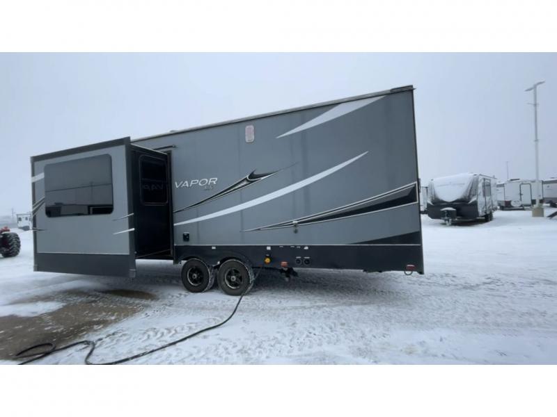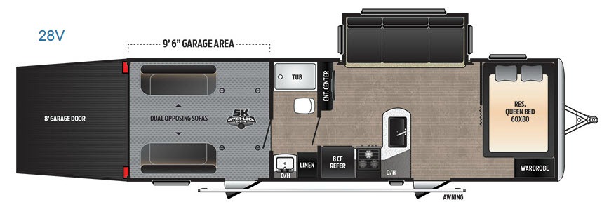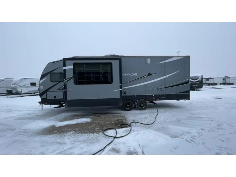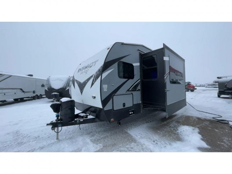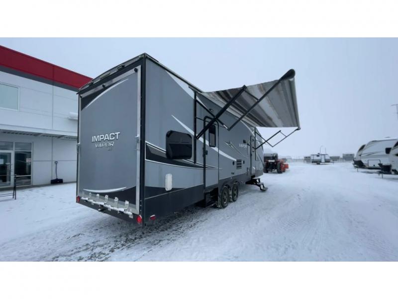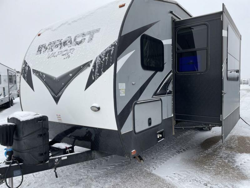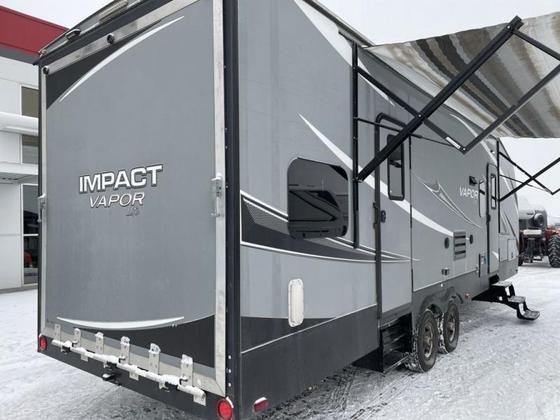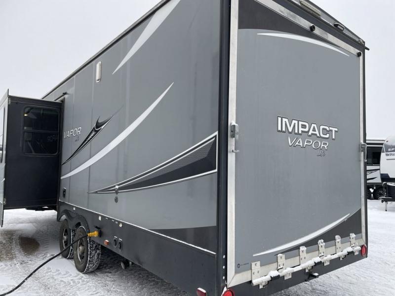 Enjoy every minute of your next weekend adventure both inside and out with this Keystone Impact Vapor Lite toy hauler travel trailer model 28V. This unit features a single slide for added interior space, dual entry doors besides the rear 8' garage door, a 10' cargo area, and comfortable living space throughout the trailer.