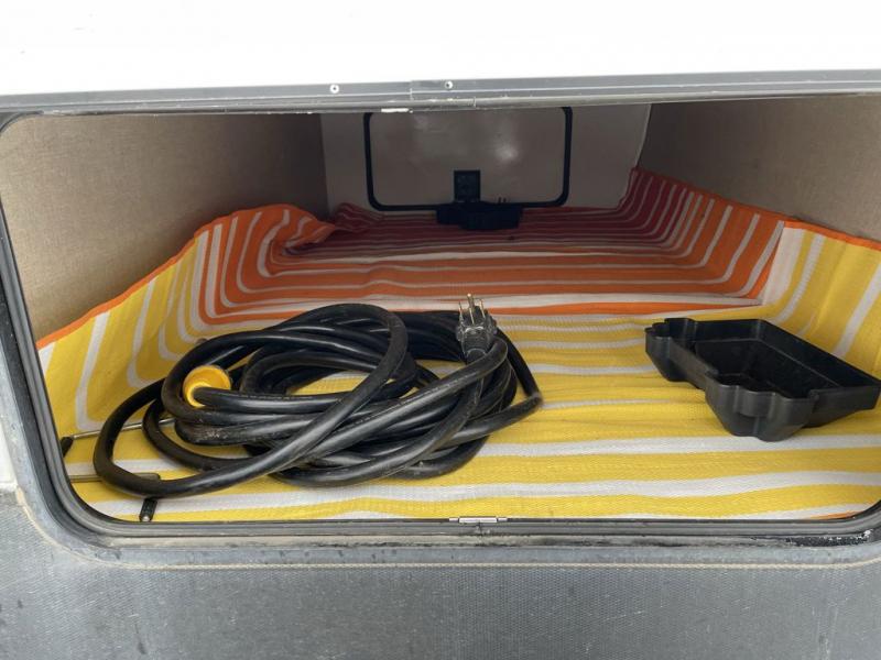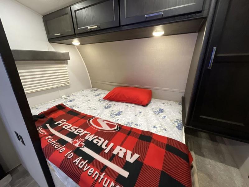 The front bedroom features a residential queen bed with a wardrobe along the foot of the bed, and a curtain to close for privacy, plus so much more!