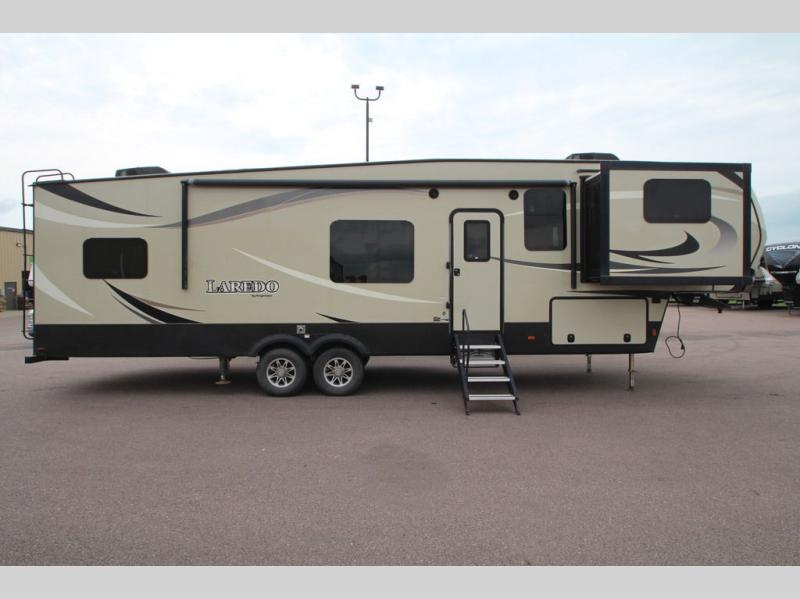 Keystone Laredo fifth wheel 340FL features a front entertainment center and living area, QUAD slide outs, plus so much more!