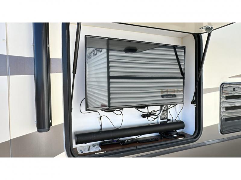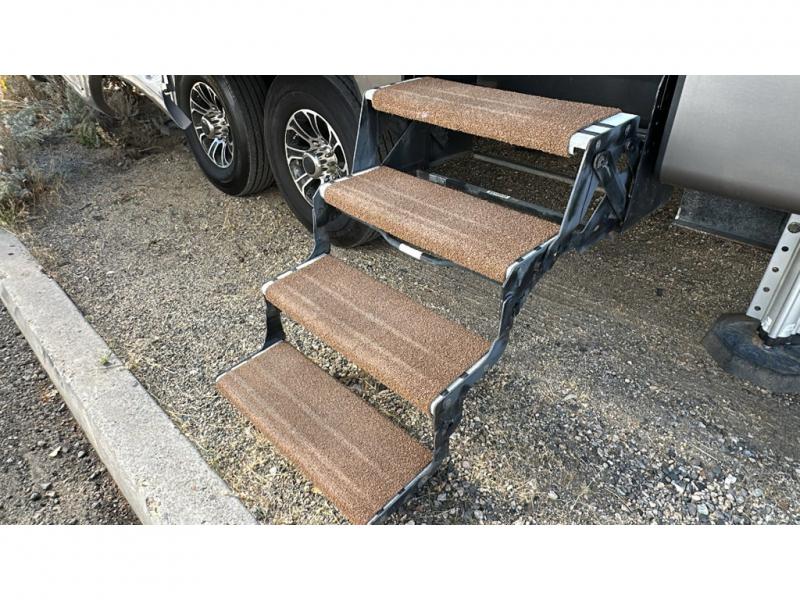 Outside you will enjoy plenty of storage, an outdoor entertainment center, and two awnings. One 18' awning covers the main entry door, and a smaller awning covers the door side slide giving you a large outdoor protected space from the elements to enjoy, plus so much more!