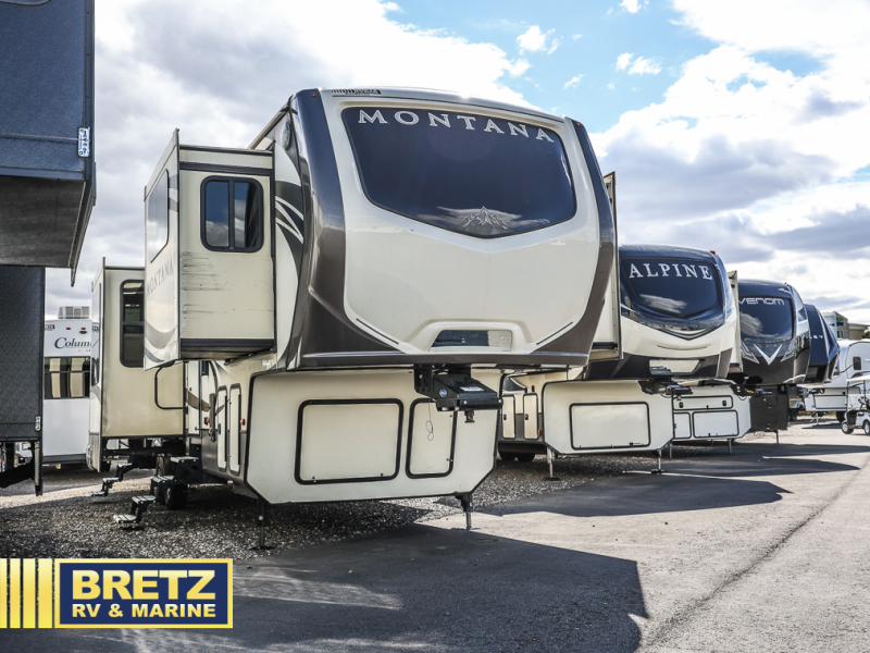 You are going to love this Keystone Montana fifth wheel featuring a spacious front living area, awesome kitchen space with dual opposing slides, and a rear bedroom. Oh, and did I mention, SIX slides!!