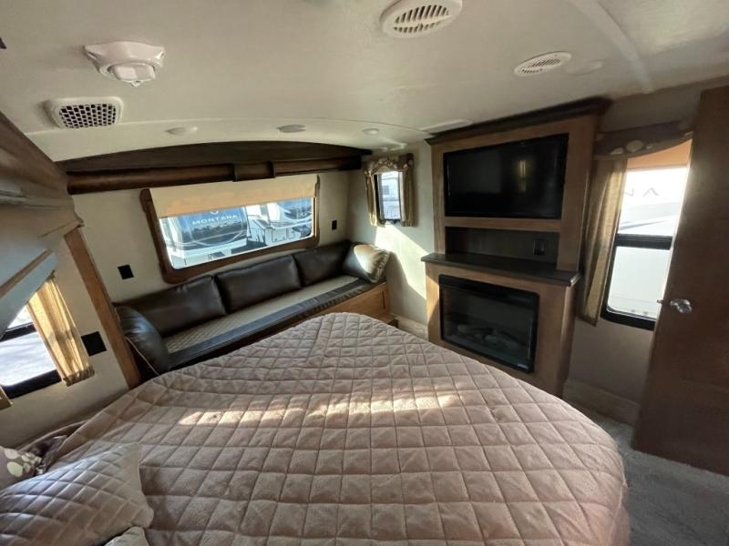 You are going to love the master suite in this Keystone Montana fifth wheel model 3810MS! With triple slides, two fireplaces, and all of the necessities, this can truly be your luxury home-away-from-home!