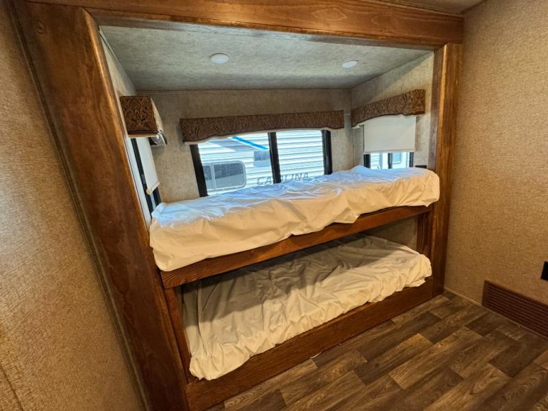 4 slide-outs and dual power awnings for a spacious campsite setup.