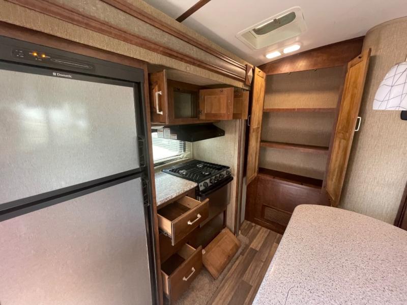The outside kitchen is sure to catch your eye. There is a refrigerator, single kitchen sink, and flip-out stove top. You will also appreciate the storage that can be found in the front exterior pass-through compartment, plus much much more!