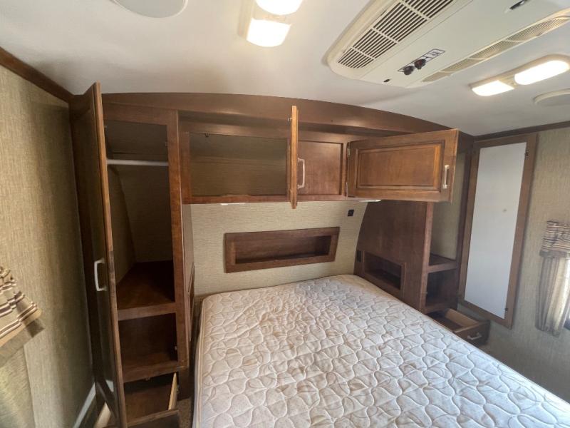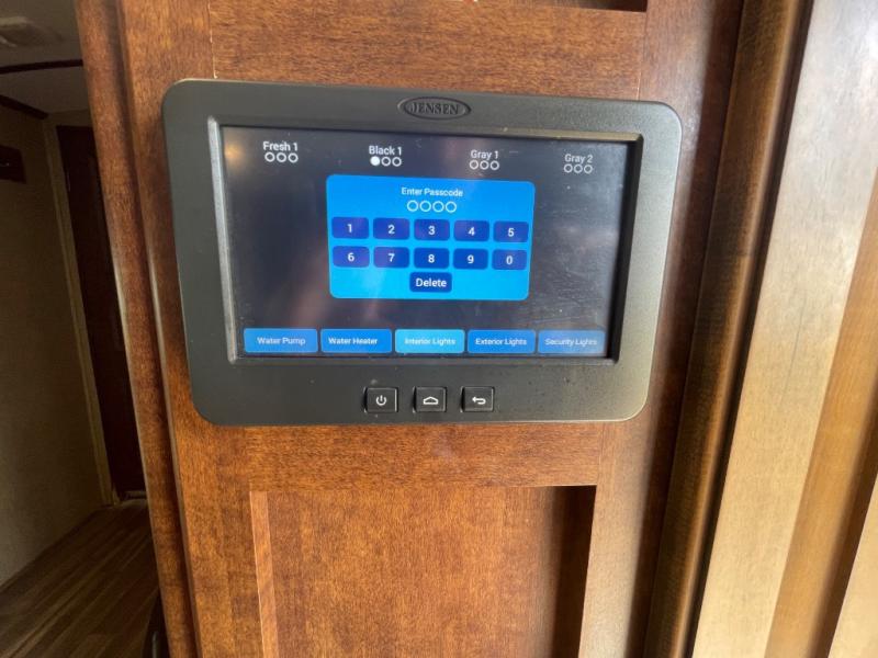 What I liked most: It has a really outdoor kitchen. It comes with everything you would wand, stove , grill, sink, expandable counter top, a drawer to put, a great looking wood, and a fridge. Frameless windows look great on the outside. The light bar under the awning is very helpful at night. Large outdoor speakers are enjoyed by everyone. The bedroom reading lights are adjustable and are bright. The kitchen island looks rather large and like it has more storage. The entertainment center looks like it was way more storage than what I am used to seeing.