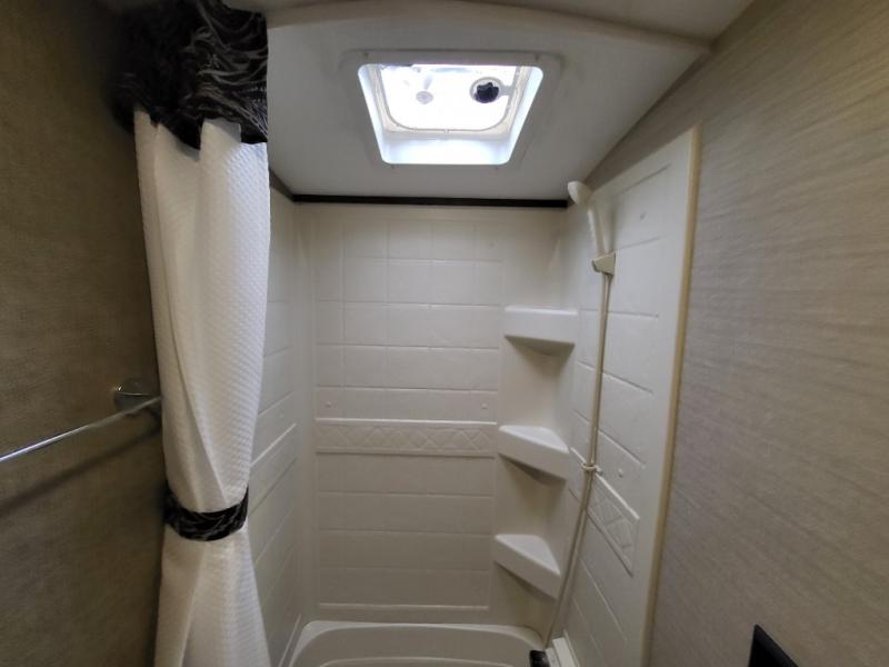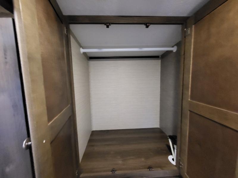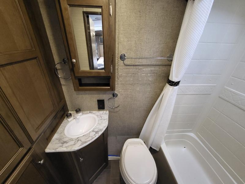 The rear features a bathroom with large wardrobe for storage. There is a tub/shower, toilet, sink, and so much more!