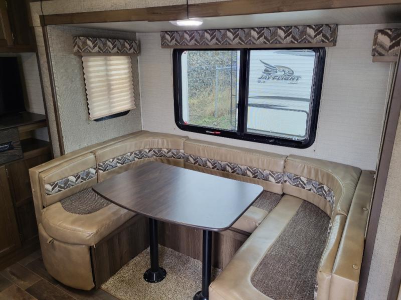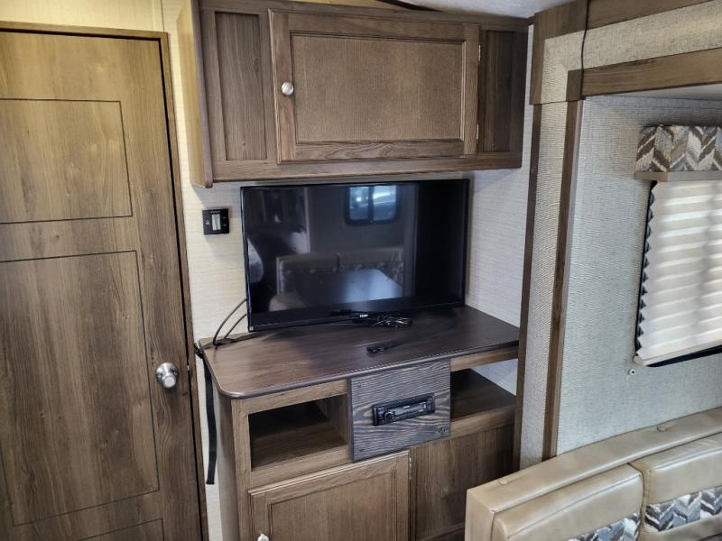A slide out u-shaped dinette provides plenty of seating and extra space inside. And you can easily enjoy the TV located nearby.