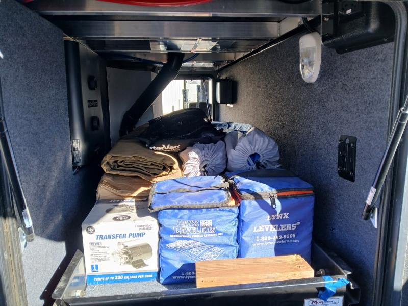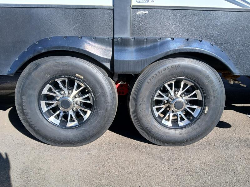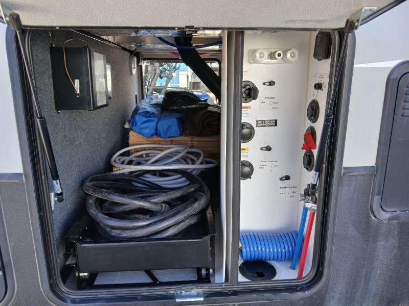 On the outside you will find a 16' electric awning off the main entry door, and a second 12' electric awning off the garage side man door. There are dual 30 gallon fuel tanks that will certainly keep you on the move all weekend long.