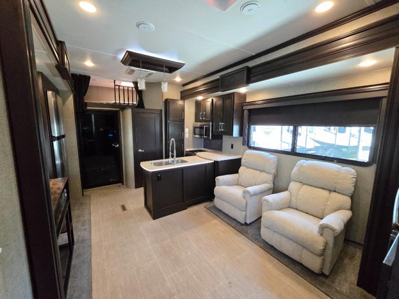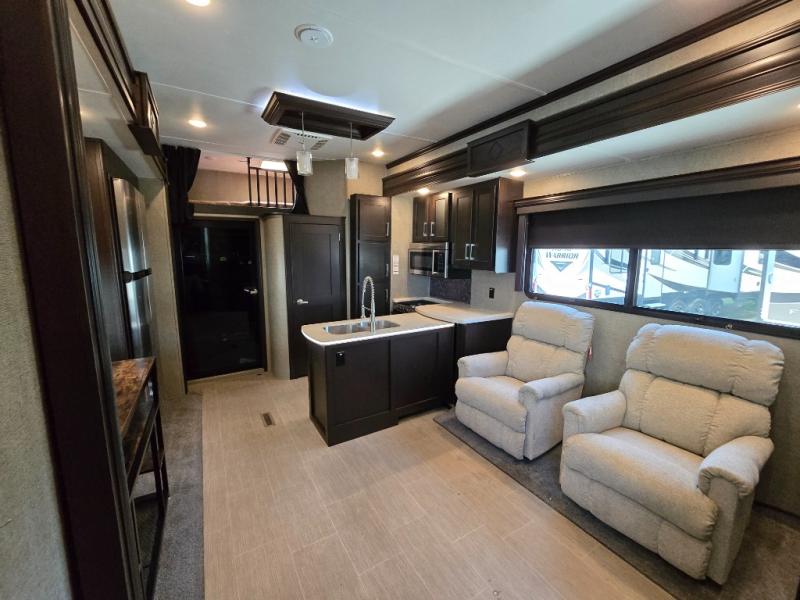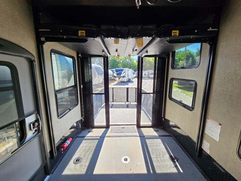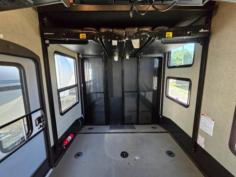 Load your toys, some food, and a few friends before heading out for a weekend filled with fun! This dual entry Keystone Raptor toy hauler fifth wheel 425TS will make life on the road easy and comfortable!