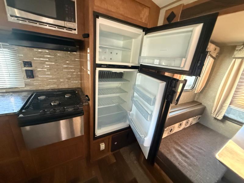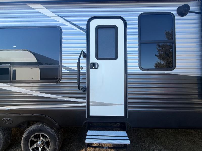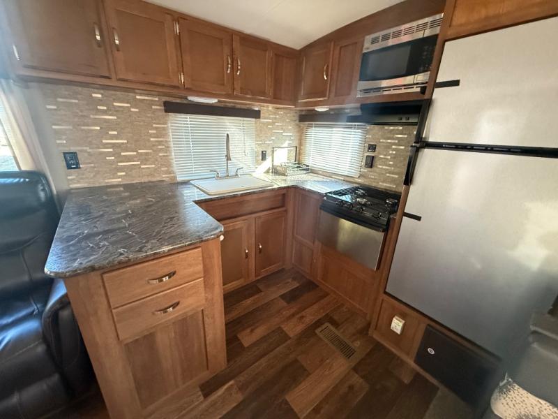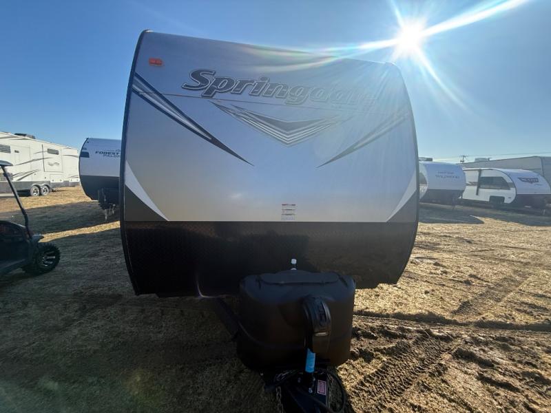 The rear kitchen layout is what makes this Keystone Springdale 293RK unique. This travel trailer also features a large living area slide for added space, two lounge chairs, plus so much more!