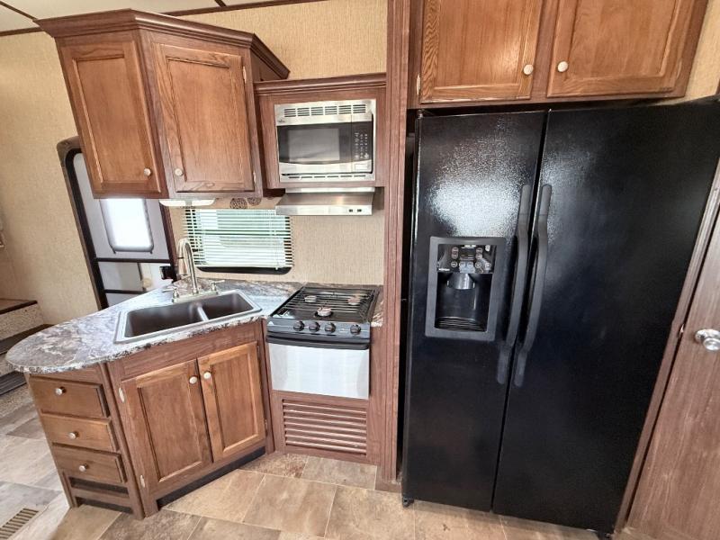 Keystone's Sprinter 326FWBHS fifth wheel with its wide body design has enough space for everyone with a bunkhouse for the kids, a spacious living room, a fireplace, and more! There is even an outdoor kitchen for added convenience, and a spacious walk-in utility room that has also been prepped for a washer and dryer!