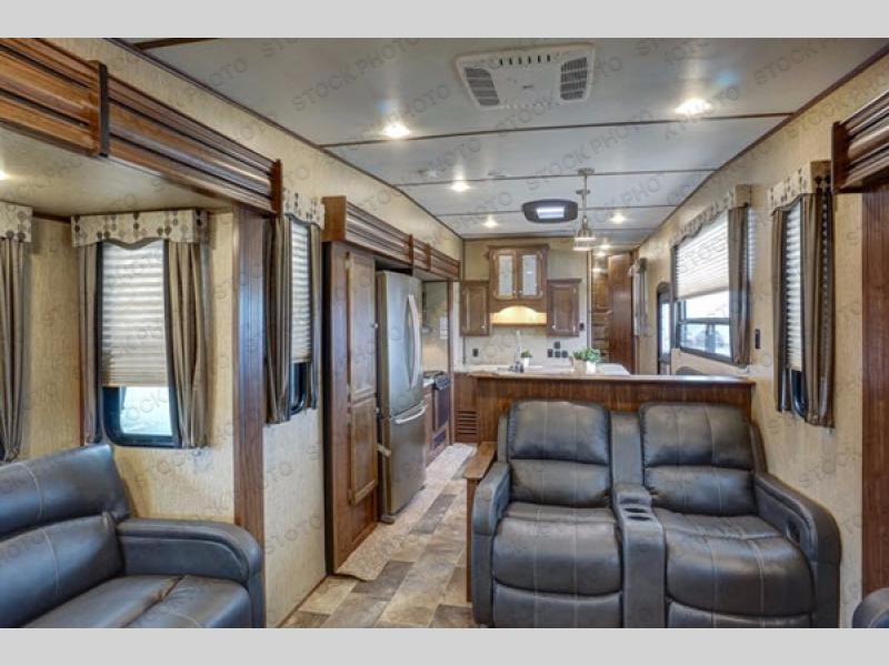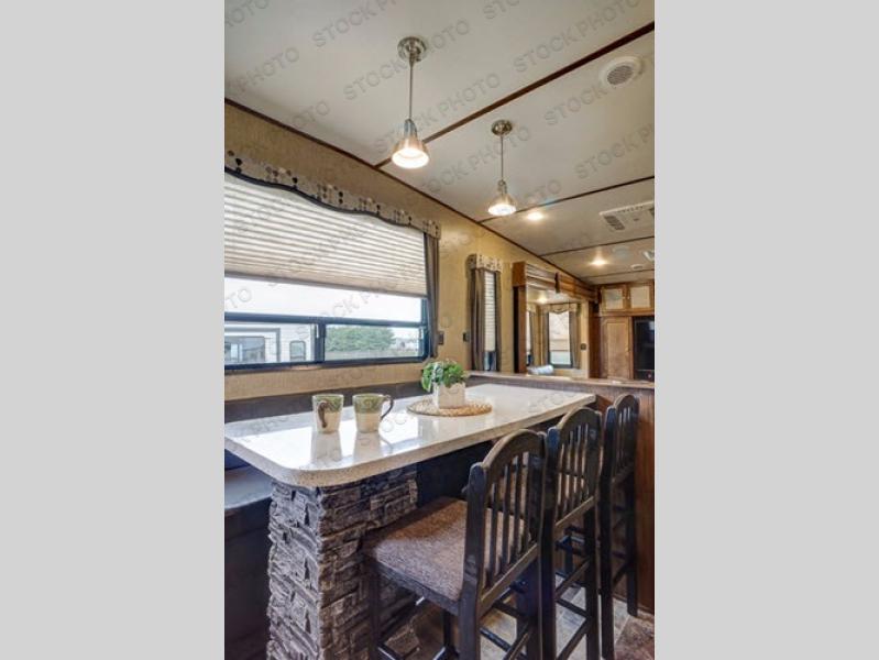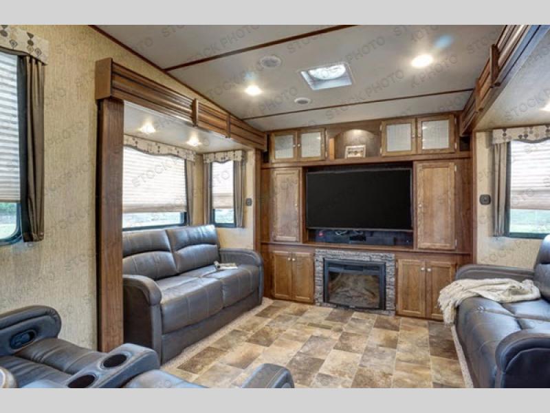 This Keystone Sprinter fifth wheel features a wide body design with quadruple slides which increases the size even more when all slides are fully extended. You are sure to love the den area with the rear entertainment center and fireplace.