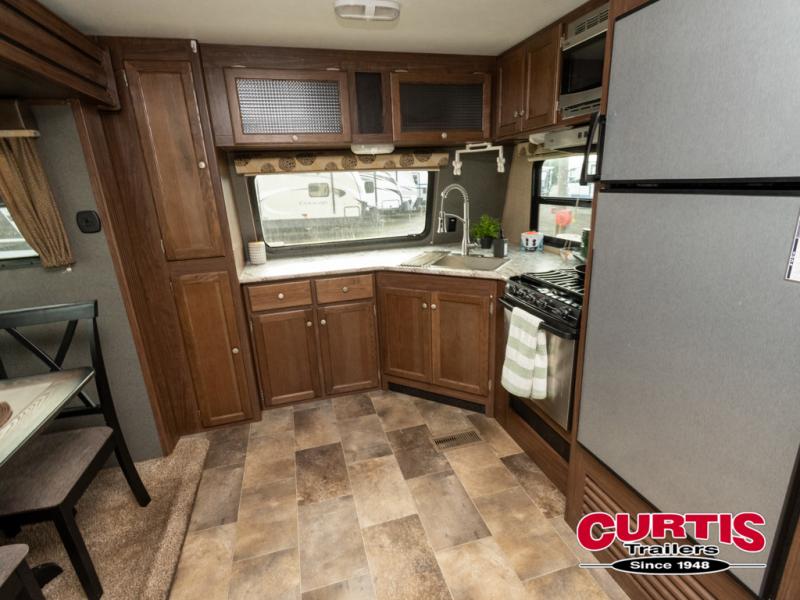 This Keystone Sprinter Campfire Edition travel trailer model 29FK features a front kitchen, a rear bedroom, and more!