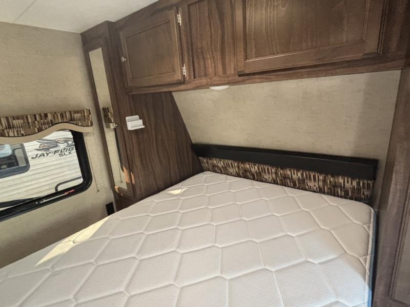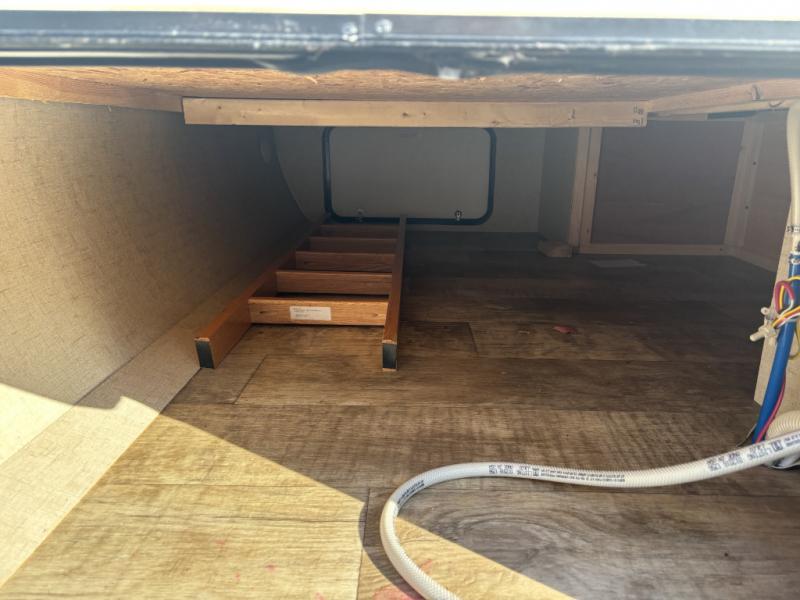 There are plenty of overhead cabinets throughout the travel trailer, as well as a large pass through storage area outside. Plus there is a trunk door on this unit. You can even choose an optional kitchen which has a refrigerator, two burner range, and a sink.
