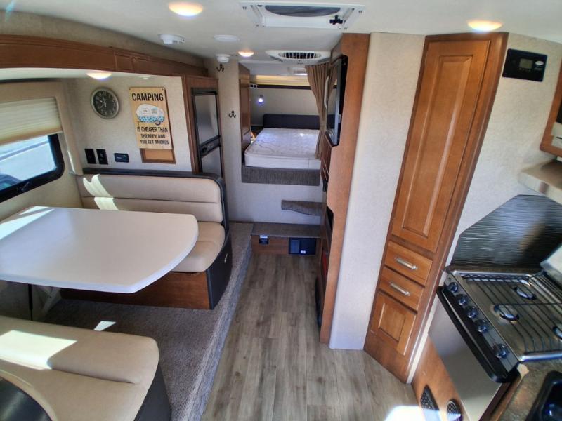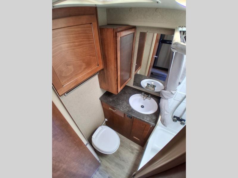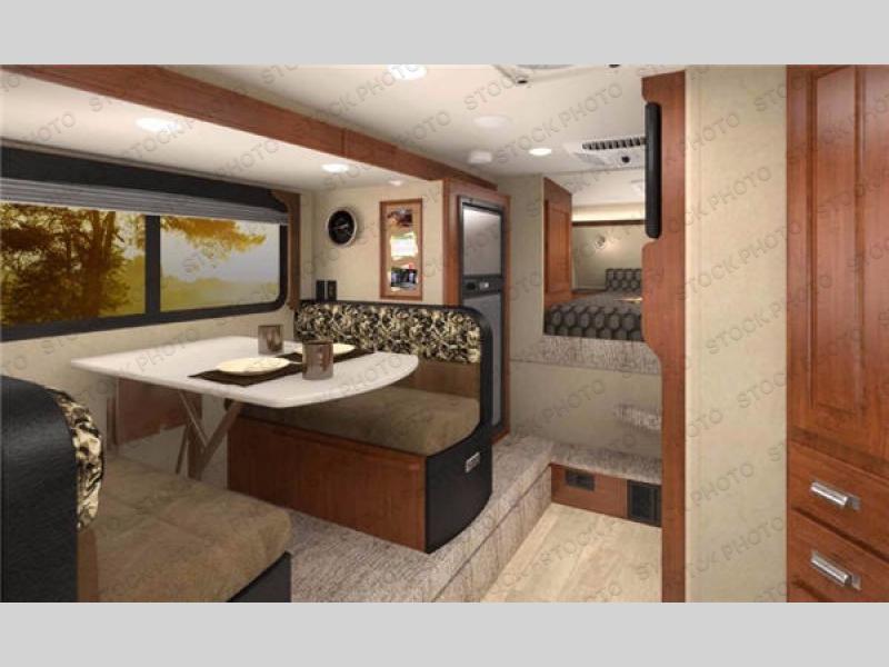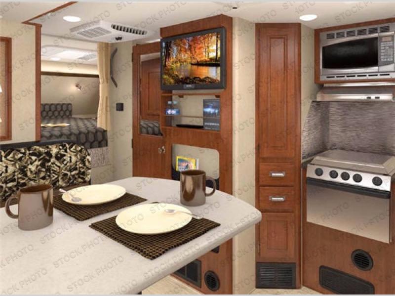 Across from the dinette along the outer bathroom wall you will find an entertainment center which will allow you to add an optional TV if you like.