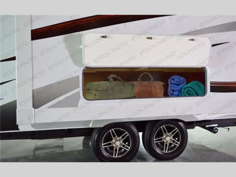 There is a large slide out u-shaped dinette which will easily seat everyone comfortably. An entertainment center has been placed so that it faces the entire living space so no matter where you are at, in the large u-shaped dinette slide, laying in bed, or on the sofa bed if you chose it, you would have a great spot to enjoy the optional TV.