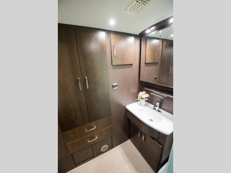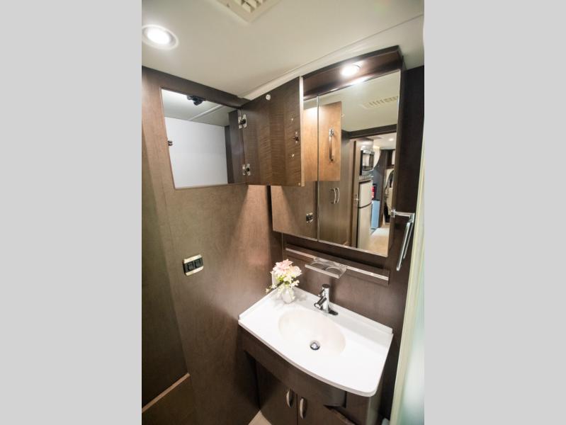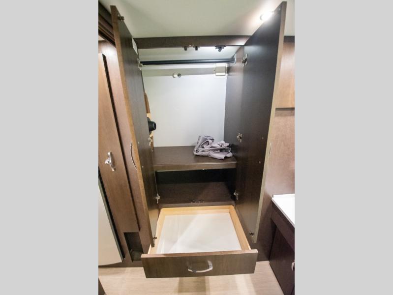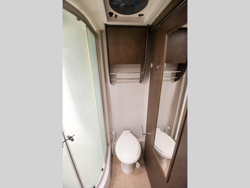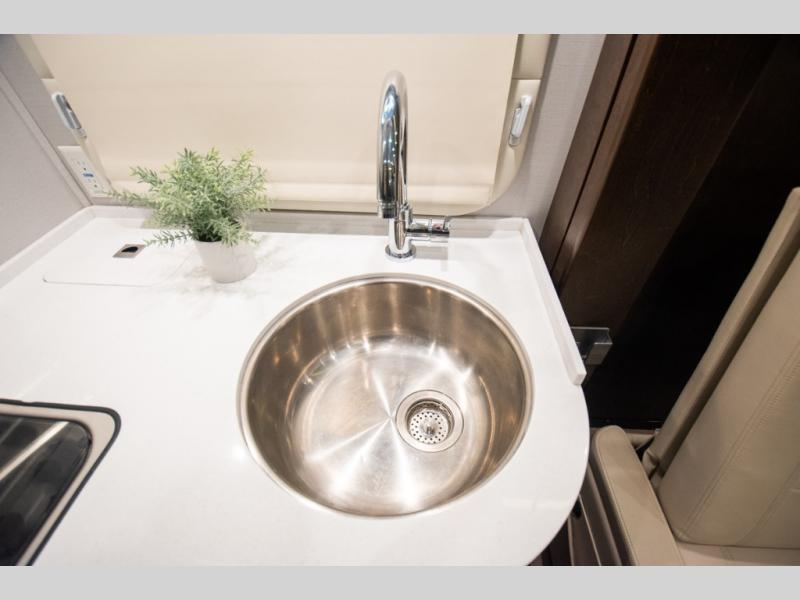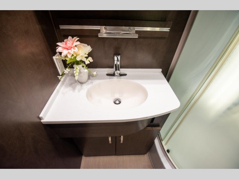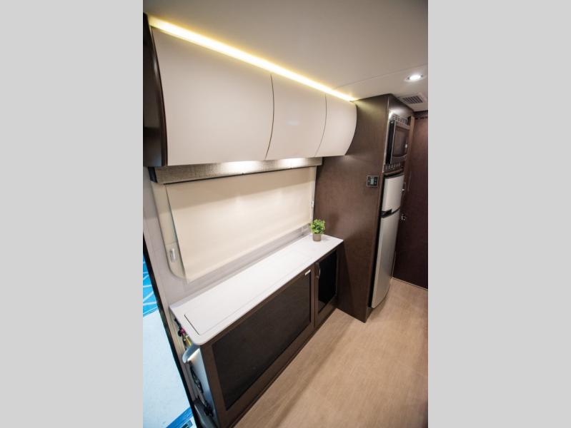 This Leisure Travel class B+ diesel unit 24MB offers a single slide out with a queen size Murphy bed included, a 39" LED TV, curved European cabinetry throughout, and a bathroom that will make any class A owner envious.