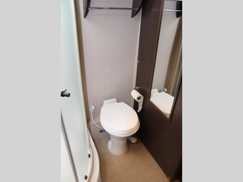 This Leisure Travel class B+ diesel unit 24MB offers a single slide out with a queen size Murphy bed included, a 39" LED TV, curved European cabinetry throughout, and a bathroom that will make any class A owner envious.