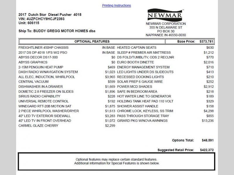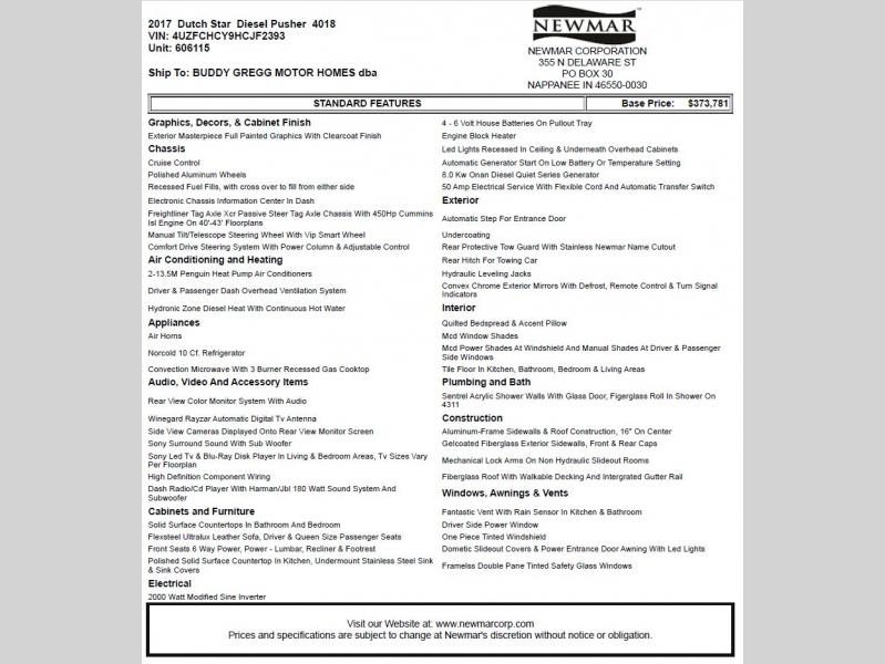 Used 2017 Newmar Dutch Star 4018 Motor Home Class A - Diesel