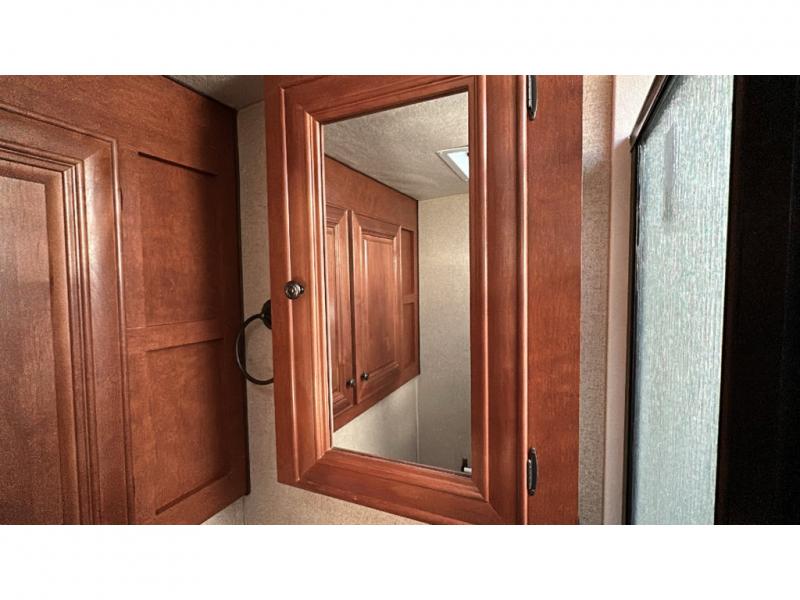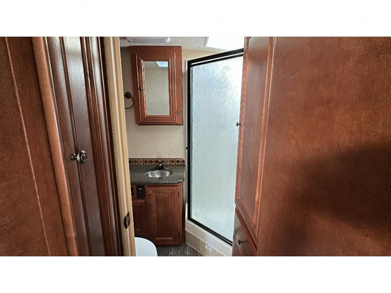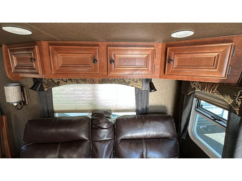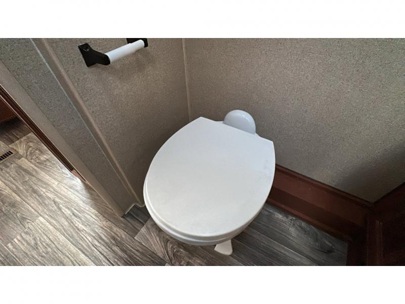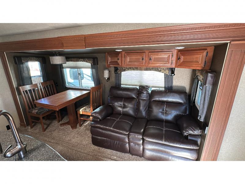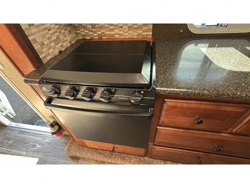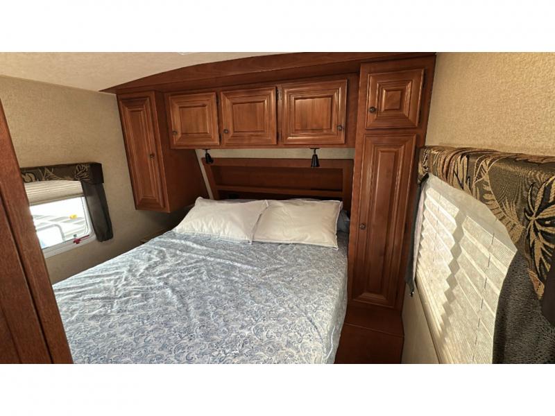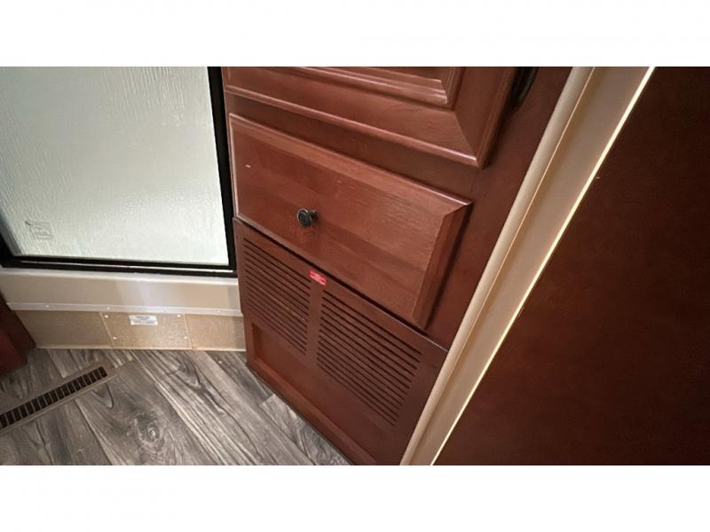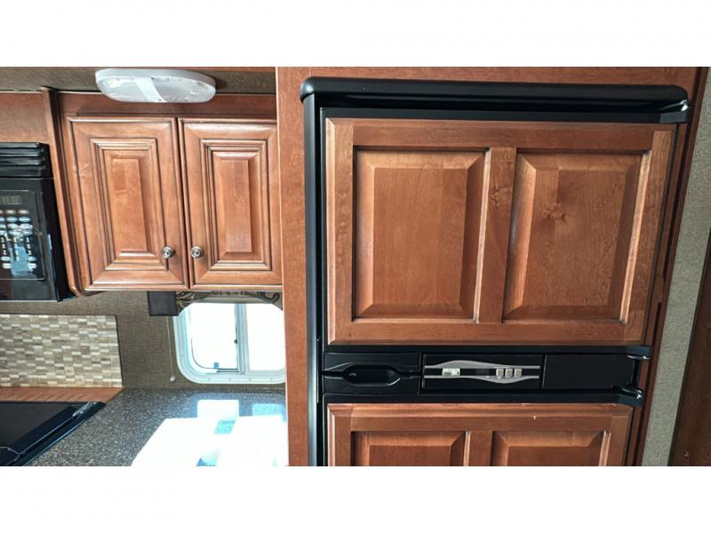 Step into the Silver Fox Edition Arctic Fox 28F to find two slide outs opposite each other for wide open living space. The slide to the left of the entry includes a refrigerator, a three burner range, counter space and overhead cabinets. There is a large storage pantry on the inside wall. A center kitchen island includes a double sink for easy clean up.
