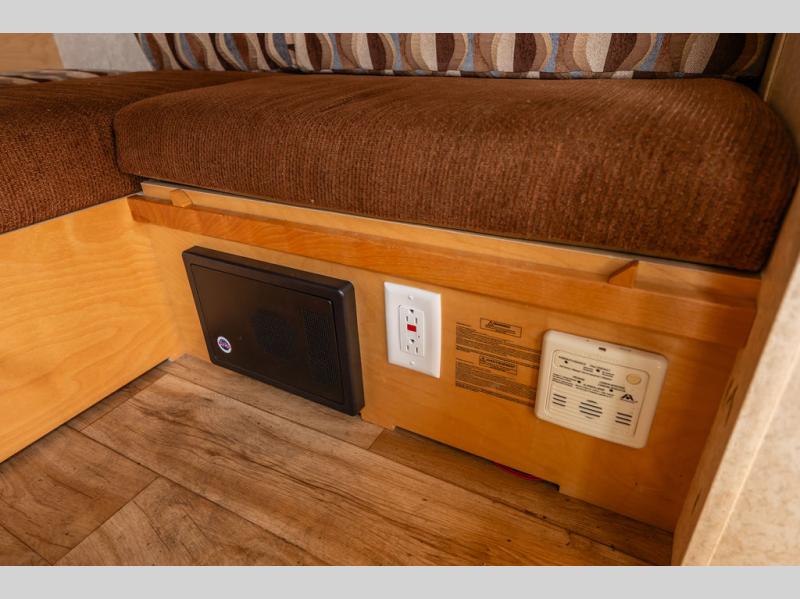 There is plenty of seating with the u-shaped dinette featuring storage beneath all of the benches, as well as along the back wall up above. When nightfall comes, you can easily fold down the table and create a 70" x 76" sleeping space for two. There might even be room for the family dog!