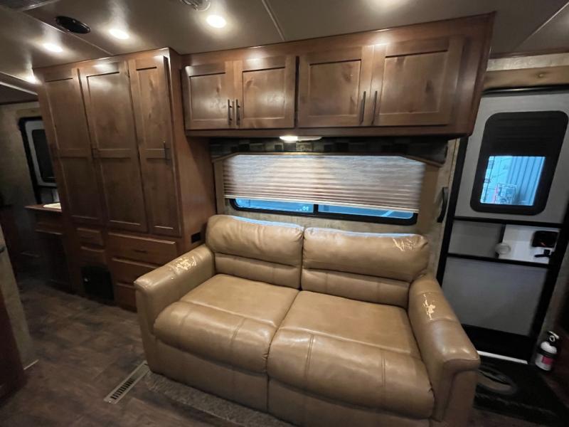 On the opposite side of the dinette you will find seating from the sofa sleeper, plus additional sleeping space at night. You even have the option to choose two lounge recliners in place of the sofa. The kitchen pantry provides extra space for your favorite dry goods.