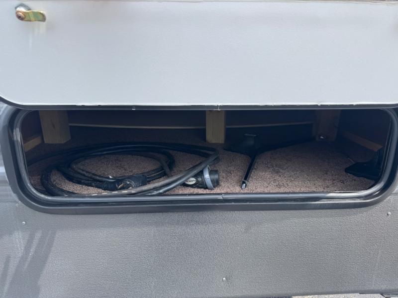 The rear private master bedroom features a slide out king bed with overhead storage and shelves, a dresser on the opposite side of the bed, and a wardrobe, linen cabinet, and an additional smaller wardrobe with optional washer/dryer prep along the rear wall. The second entry/exit into the trailer comes in handy if you need to get in quickly to change clothes or relax or a while, and more!