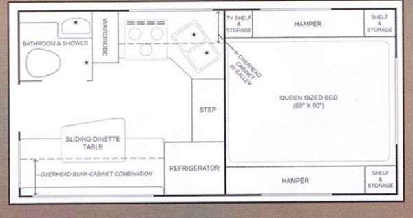 Truck Camper, Sliding Dinette, Refrigerator, Toilet, Shower, Lav., Wardrobe, 3-Burner Range, Dbl. Kitchen Sink, Step Up To Queen Sized Bed, TV Shelf & Storage, Hamper, Shelf & Storage, Hamper, Shelf & Storage, Overhead Cabinets Throughout & Much More.