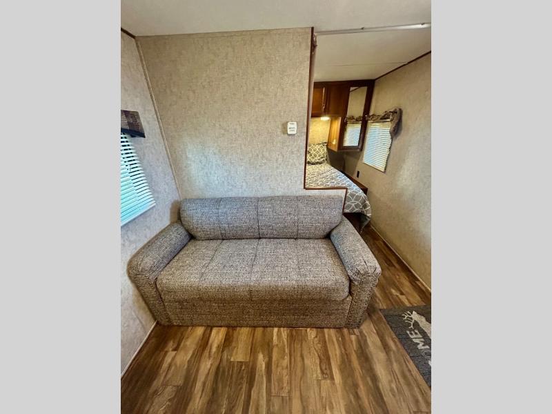 This Avenger ATI by Prime Time will have you and your family quickly enjoying time away from home! This travel trailer model 26BK offers a rear bath layout, a double bed bunk above an exterior kitchen, and a private front bedroom, plus more!
