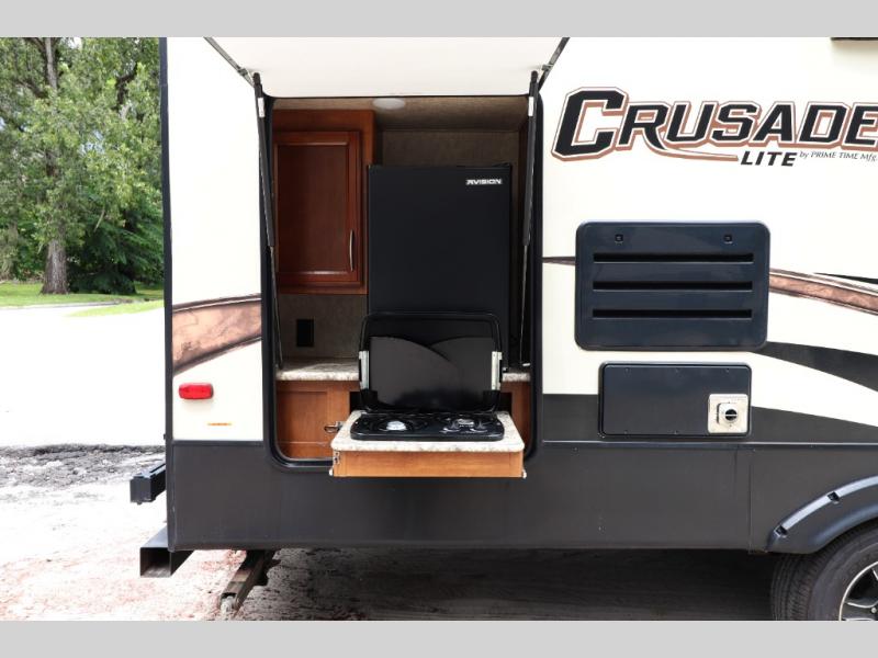 Experience adventure in the 2017 Prime Time Crusader LITE 26RE—lightweight fifth wheel with outdoor kitchen, queen bed, spacious slide-out, solar prep, and family-friendly comfort!