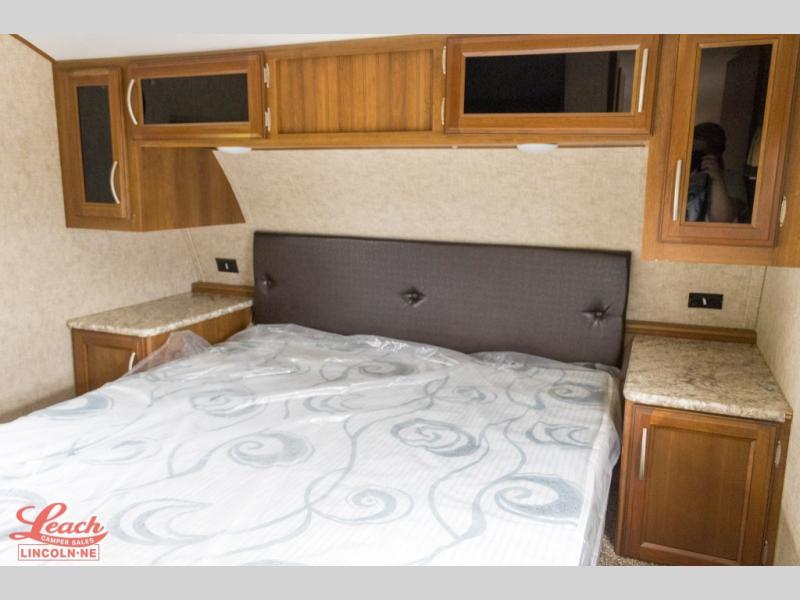 In the front bedroom you will find a queen bed with nightstands and overhead cabinets along the front wall. A closet with drawers is located in the corner of the room allowing for more camping clothes, plus much more inside and outside this Crusader LITE!