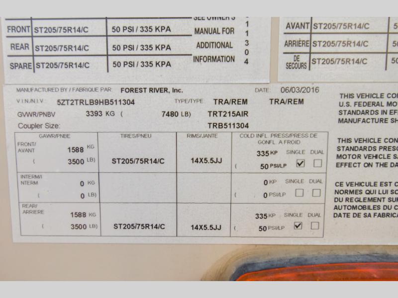 Used 2017 Prime Time RV Tracer Air 215AIR Travel Trailer