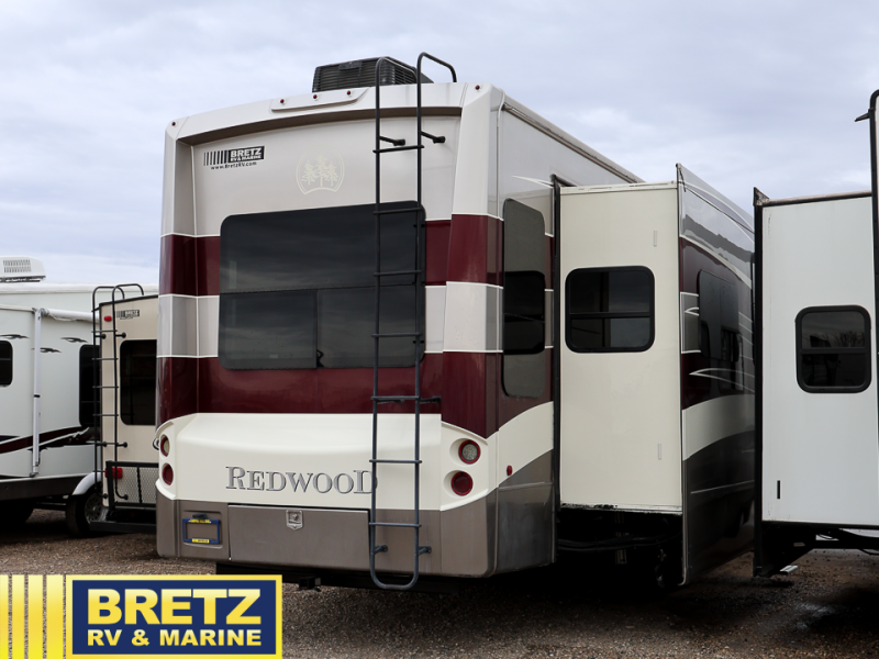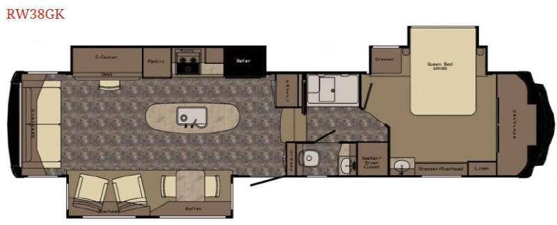 This triple slide Redwood fifth wheel 38GK will allow you to travel in comfort and style with many of the conveniences of home. From an entertainment center and desk in the rear living layout, a front master bedroom with plenty of storage, plus a walk-through bath you are sure to feel right at home on the open road.