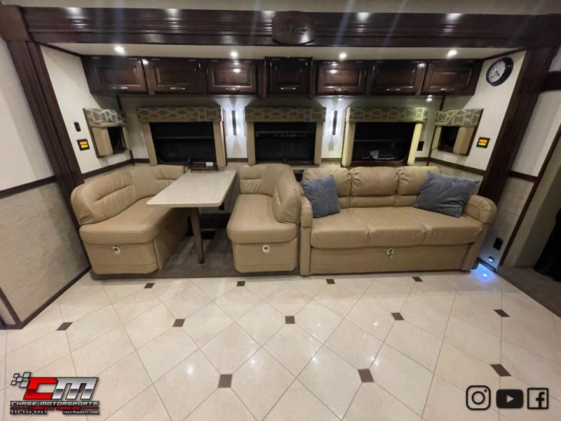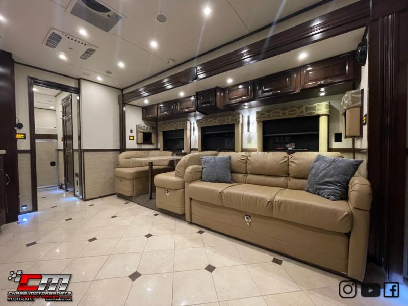 2017 ShowHauler Motorhome w/ 19’ of Living Quarters & 18.5’ Garage Space!! Only 27K Original Miles. 600HP Cummins w/13SPD UltraShift Trans. Loaded with every option offered. Two Slides, Porcelain Tile Floor, Sleeps 8 Comfortable, Bunk Over Cab, Hide-A-Bed in Main Living Area, Garage seating that also converts into a bed, Whirlpool Stainless Fridge & Convection Microwave, 2-Burner Induction Electric Cooktop, Large Stainless Sink, Oasis Hydronic Tankless Hot Water & Heating System, All Electric Coach (No Propane!), Samsung TVs, UltraLeather Furniture, Booth Style Dinette, Large Mid-Bath with Full Size Glass Enclosed Shower, Rubber Coin Floor in Garage, Full Body Paint, Hydraulic Auto Leveling System, 10KW Onan Diesel Gen, 16’ Awning w/LED Lights, Outdoor Entertainment Center, Heated Holding Tanks, In-Motion Satellite, Corian Countertops, Maple Cabinets, Liftgate on Rear of Coach. Please Call or Text Dylan anytime with any questions! (270) 556-8461.