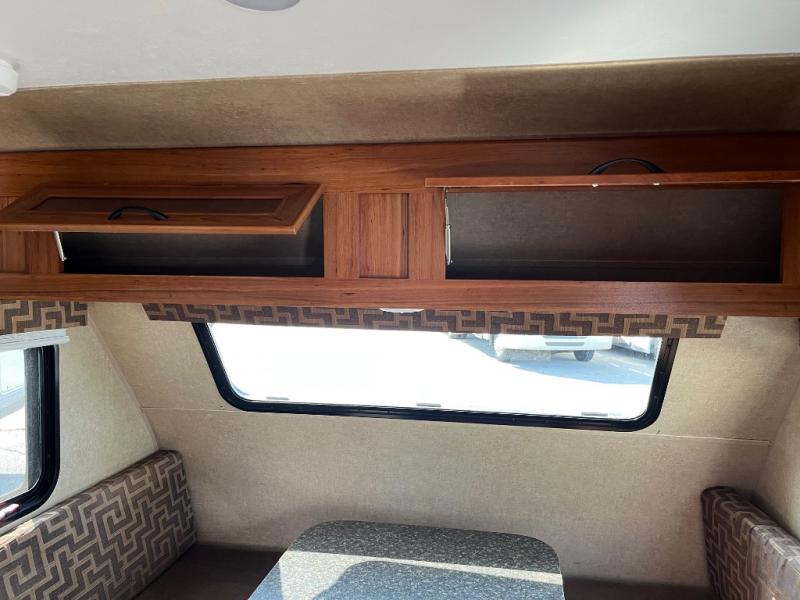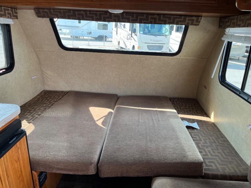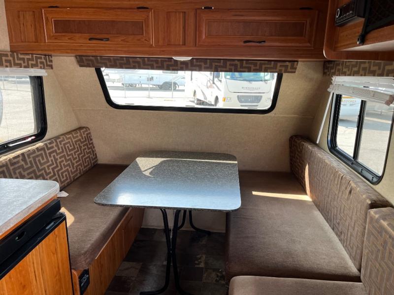 The front booth dinette is great for mealtime and even a board game or two. When you lower the table it becomes a handy place to sleep.
