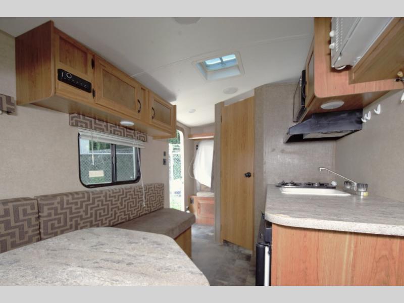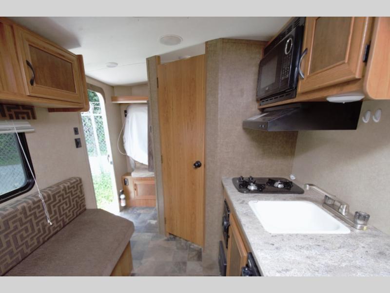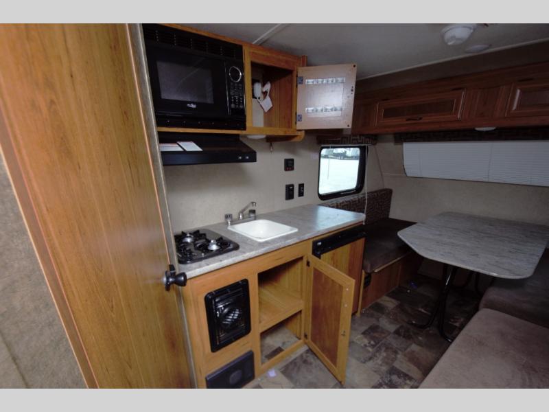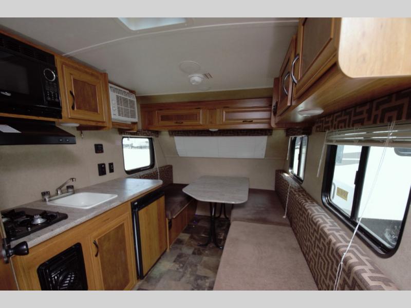 The 2017 Starcraft AR ONE 15RB is a lightweight and easy to tow expandable travel trailer, perfect for small families or couples. It features a rear tent bed for added sleeping space and a front booth dinette that converts into an extra bed. The compact kitchen includes a two burner stove, microwave, refrigerator, and sink, making meal prep simple on the go.