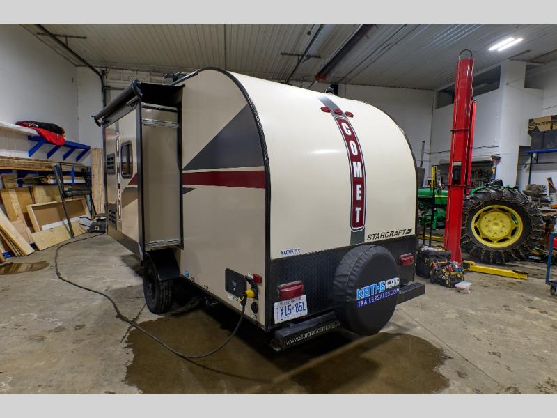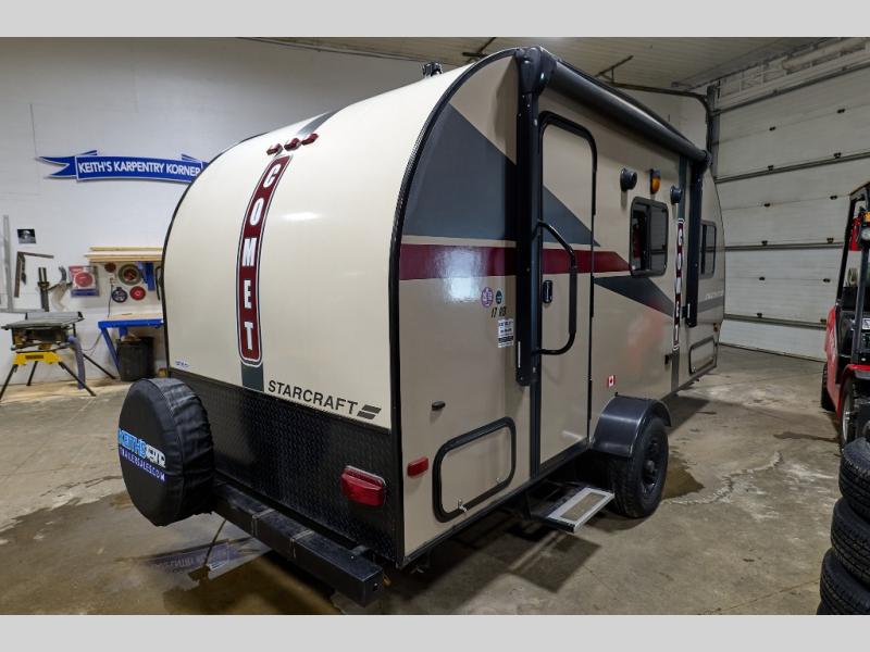 If you enjoy a full rear bath's convenience, a single slide out for more interior space, and a front queen bed, you are sure to want your next adventure in the Starcraft RV Comet Mini travel trailer model 17RB.